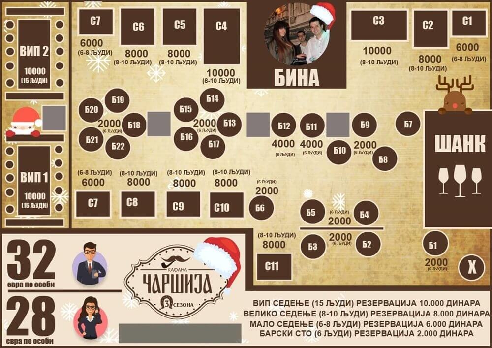 - Vip sedenje - 10 do 15 osoba, rezervacija 10.000 din
