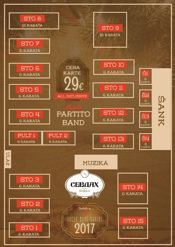 Vrhunski provod kao i prošle godine u kafani Sevdah! Za novogodišnju atmosferu je zaduzen Partito band!