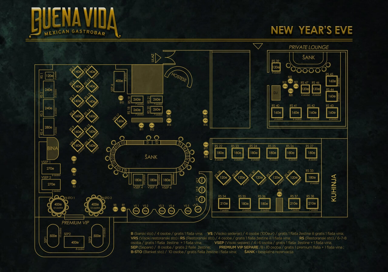 Rezervacije se posebno doplaćuju (sem mesta za šankom) :