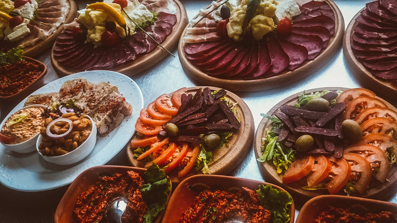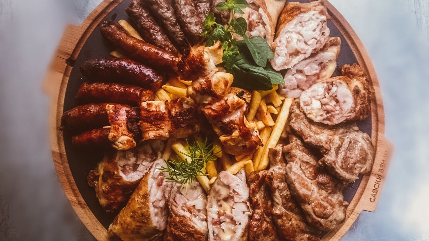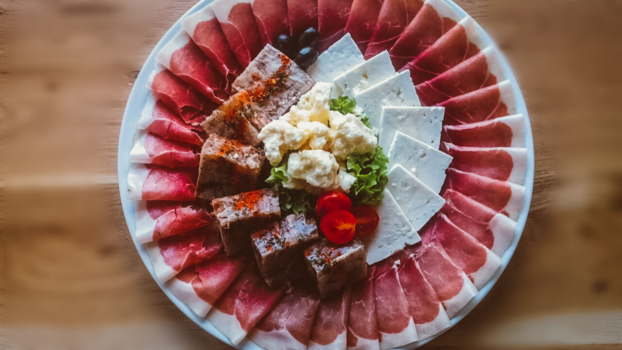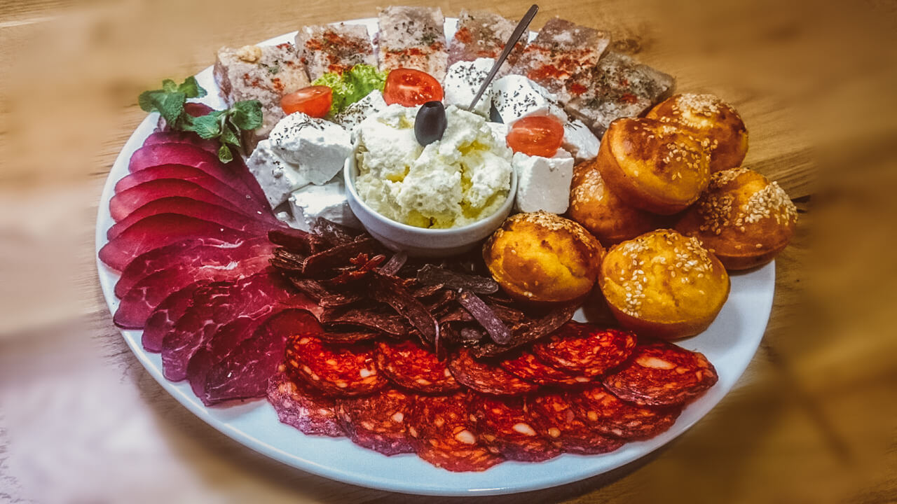 - Predjelo: Srpski tanjir (pita gibanica, proja, mladi sir, sjenički sir, urnebes, valdorf salata, pileća salata, kulen, pečenica, prebranac).