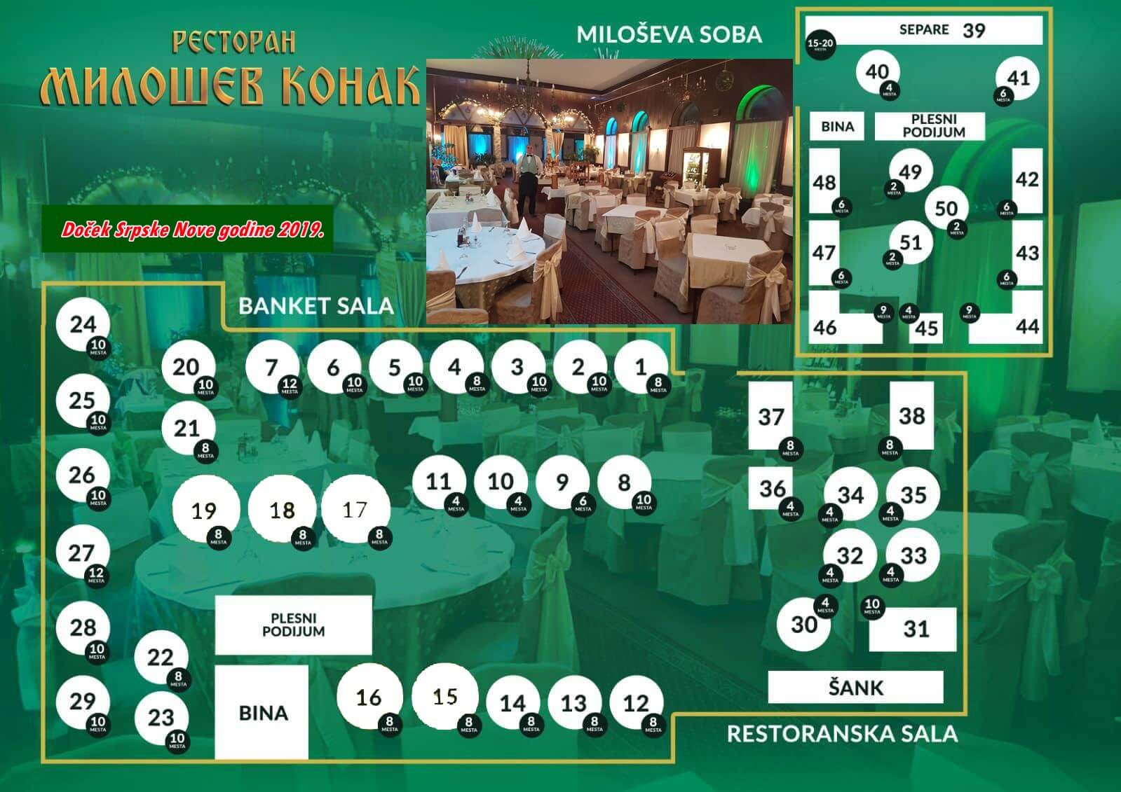 U cenu uračunata bogata večera i all inclusive paket pića, prema navedenoj specifikaciji i sedeće mesto za svečanim stolom. Sva mesta su sedeća i restoranska. Imamo razne tipove i veličine stolova od dvojki do dvadeset dvojki pa će naši menadžeri biti u mogućnosti da Vam maksimalno izađu u susret.