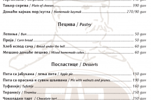 The restaurant offers primarily the dishes of national cuisine. We have to mention that in the everyday offer of this restaurant the rolled veal prepared under the sač is prepared, the dish that visitors of the restaurants Gaj want to enjoy over and over again.