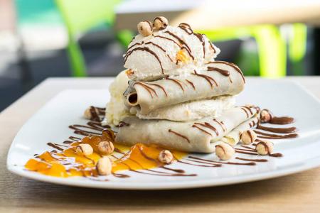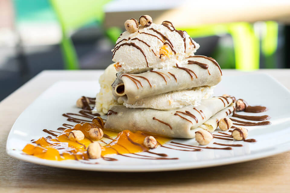 Restaurant Keops specializes in preparing a wide variety of salt and sweet pancakes.