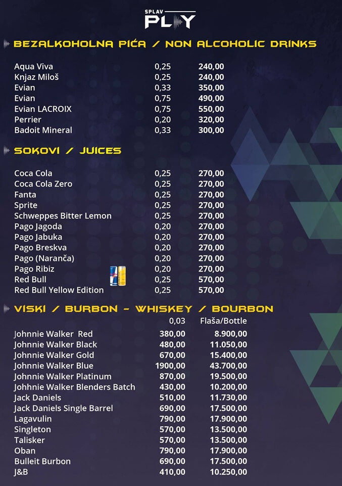 Jedan od najpopularnijih beogradskih splavova, sa najdužom tradicijom noćnog provoda je svakako SPLAV PLAY. Karakterističan i po tome što za razliku od ostalih splavova koji rade isključivo leti, splav PLAY svoju klupsku sezonu zasniva u toku zimske sezone.