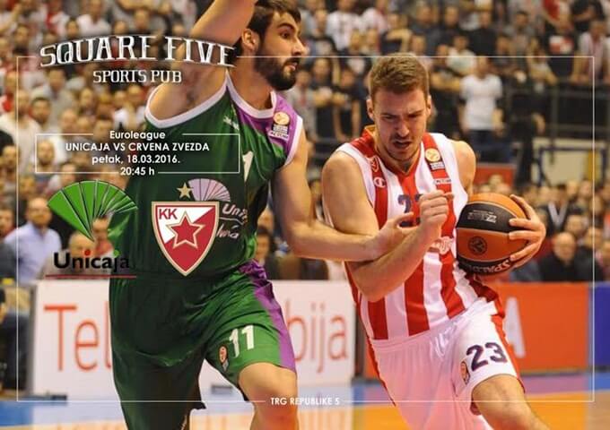 Svi ljubitelji sporta, koji pratite sva dešavanja, a pogotovu vi, ljubitelji basketa, ne propustite prenos Evropske lige, Unicaja protiv Crvene zvezde, večeras od 20:45h u pabu Square Five.