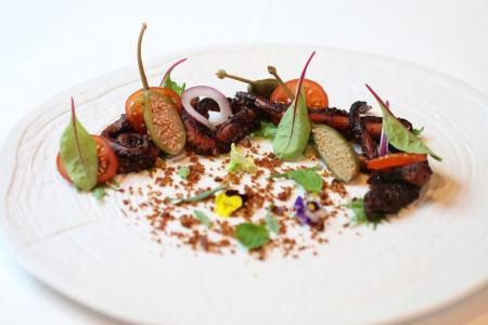 U CaffeCaffe&Fishu nikada se ne služi zaleđena riba, a jelovnik se menja sezonski. Kada nema ribe jedu se lignje i hobotnice, a sa posebnim ponosom gostima se predstavja brodet, specijalitet kuće. Šef kuhinje je Marko Lukić, u koga se gosti ovog restorana kunu. O ozbiljnosti restorana govori i činjenica da svi radnici u njemu rade već godinama.