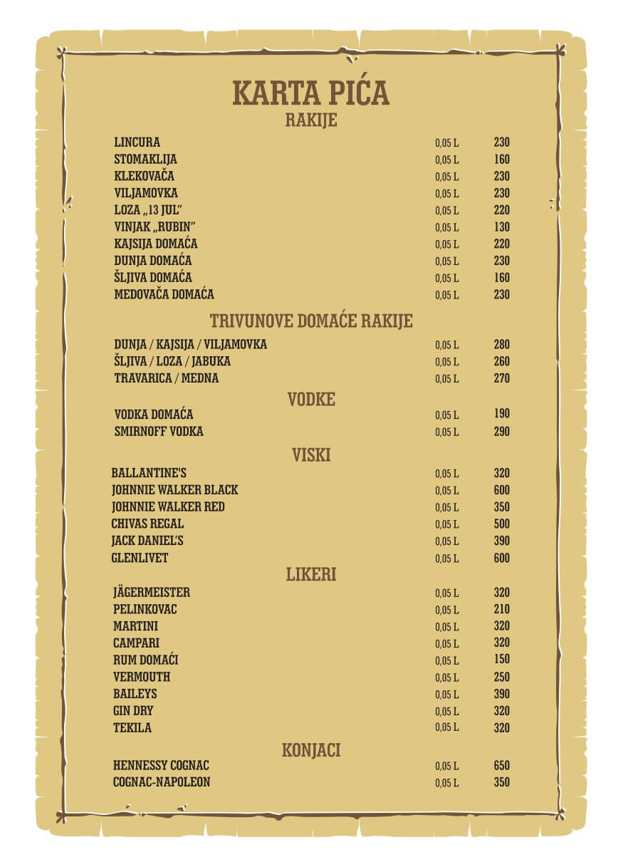 Koncept ovog restorana je veoma jednostavan - on se trudi da zadovolji ukuse svih svojih gostiju kako bi im svaka poseta ostala u najlepšem sećanju.