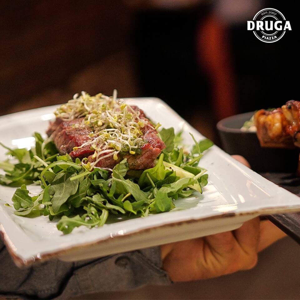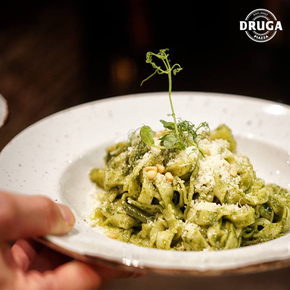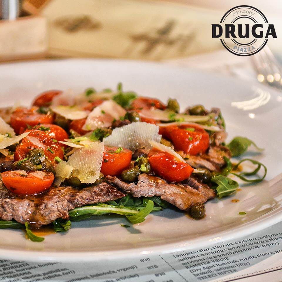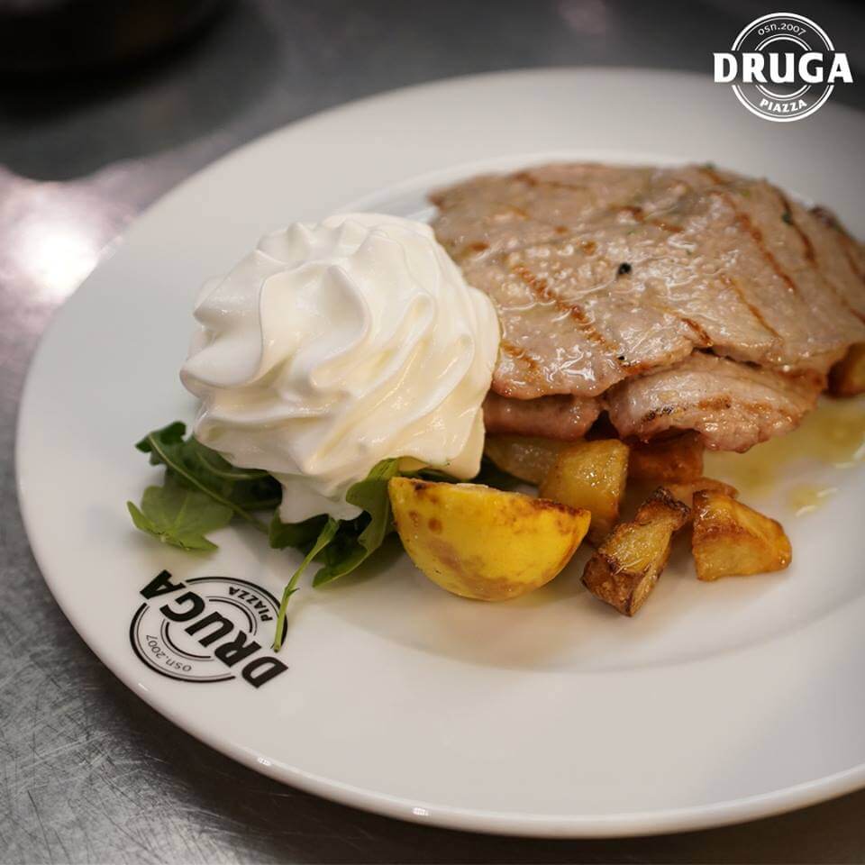 Osim svoje već čuvene pice ovaj restoran je sada bogatiji za još jednu, picu na drva, koja je ručni rad majstora Djape, kao i najkvalitetnije meso koje se pažljivo bira i doprema iz Palmanove Jolanda De Colo u Italiji. Osim najkvalitetnijih sastojaka, veliku ulogu u pripremanju najboljih pica ima i posebna peć na ćumur Mibrasa koja ima jedinstven način pečenja, na temperaturi od čak 450 stepeni. Upravo ovo nosi zaslugu za jedinstven ukus pica koje možete jesti u restoranu Druga Piazza. Osim u odličnim picama ovde možete uživati i u drugim jelima od mesa, povrća ili testeninama. Sve je prosto i jednostavno savršeno, tako da nećete pogrešiti za šta god da se odlučite.